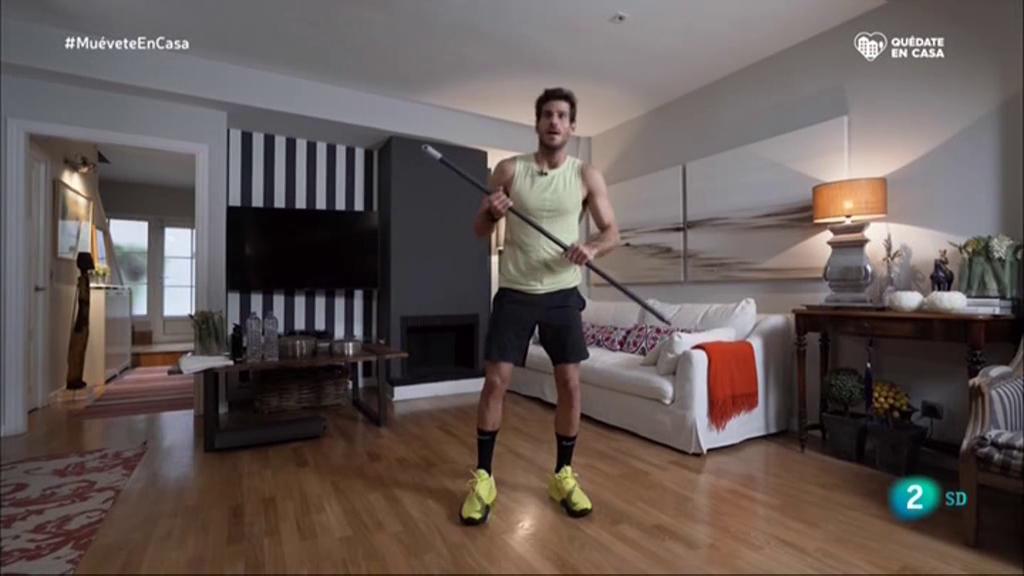 El primer ejercicio de hoy será de cardio y durará 4 minutos. Aprenderemos a hacer un tábata, un tipo de entrenamiento en el que se combinan distintos tipos de intensidad. Para ello, necesitaremos el palo de una escoba. Fortaleceremos hombros, bíceps, tríceps, espalda y piernas.