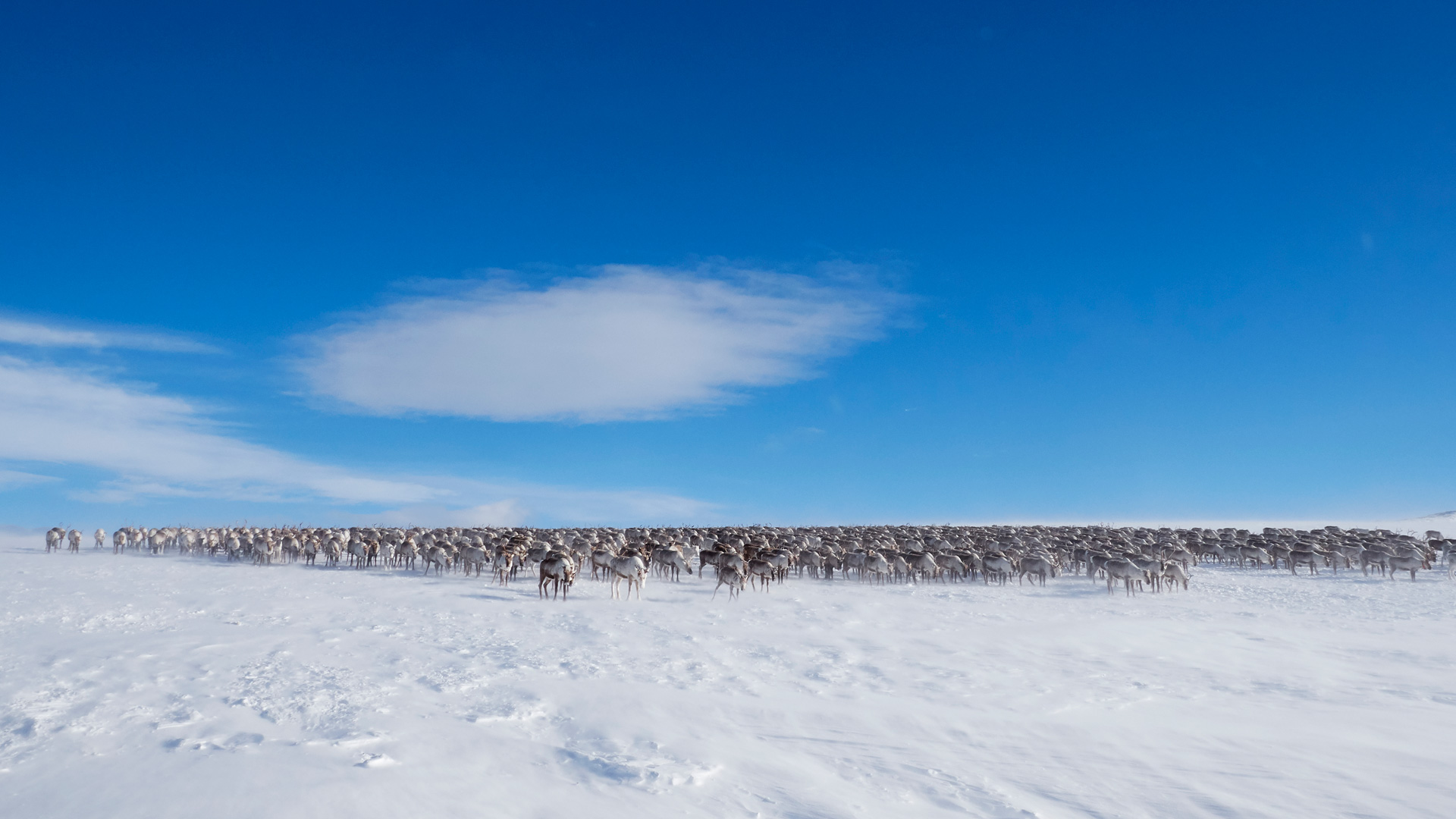 Un solo zorro ártico corre por las montañas. Tiene la misión de reunirse con su pareja del año pasado.