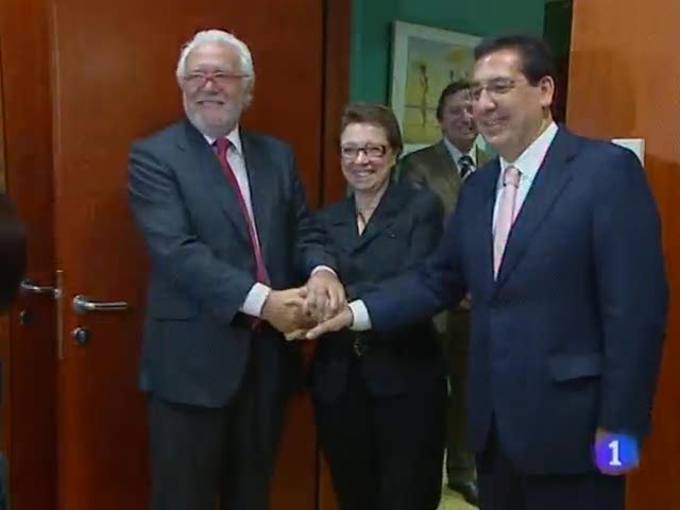01/02/2010 00:27:52--Nuevo paso para la fusión Cajasol-Caja Guadalajara: presentan el protocolo a la consejera de Economía.