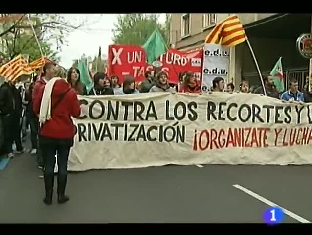 Manifestación de universitarios contra la subida de tasas. El Gobierno de Aragón recortará hasta 500 plazas de profesor interino. Una persona...