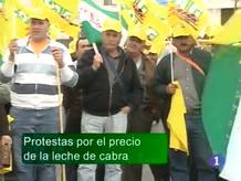 13/04/2010 00:26:15Ganaderos del sector caprino de todo el país han venido hoy a C-LM para manifestarse a las puertas de dos de las grandes empresas productoras. Denuncian el bajo precio que les pagan por la leche. Los juzgados de la región tramitaron el año pasado 5.200 demandas por despido improcedente, casi el triple de las que registraron hace dos años, antes de la crisis. Cajasol y Caja Guadalajara firmarán mañana en Sevilla un acuerdo laboral que contempla prejubilaciones para medio centenar de trabajadores, además de bajas incentivadas. Un joven marroquí ha denunciado en Albacete la agresión recibida por parte de un desconocido que, presuntamente le roció con un aguafuerte al salir de la mezquita, abrasándole la cara. Treinta empresas agroalimentarias de Castilla-La Mancha participan en el Salón internacional del Gourmet en Madrid. (13/04/10).
