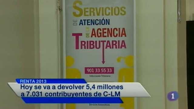03/04/2014 00:06:59Comienzan en C-LM las devoluciones de la Renta 2013. 48 horas después de comenzar la campaña, hoy se va a devolver a 7 mil contribuyentes un importe de 5,4 millones de euros. Ya hay más de 21 mil borradores de renta confirmados. Hoy también comienza la atención por teléfono e internet. Se prevén en la región 892.000 declaraciones.