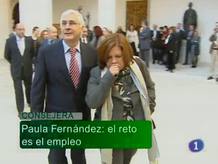 Paula Fernández es ya la nueva Consejera de Empleo de C_LM. Esta mañana ha tomado posesión y ha participado en la reunión del Consejo de Gobierno. En Octubre cayeron las ventas de coches en todo el país. En C-LM, hasta un 43% con respecto al mismo mes del año anterior. Un hombre ha muerto y otras tres personas están ingresadas, una en estado grave, por comer setas venenosas en el municipio de El Torno, en Ciudad Real. Los vendedores de Lotería temen por su futuro. Las nuevas máquinas colocadas en establecimientos autorizados, permiten incluso elegir el número. La policía sigue investigando la muerte de un hombre en Talavera, que apareció el domingo apuñalado en la calle cuando un amigo le esperaba para desayunar en una churrería. Gran expectación ante la inminente visita del Papa a España, especialmente en conventos de clausura como el de Santa Isabel, en Toledo, donde las hermanas lo seguirán por televisión. (02/11/10).