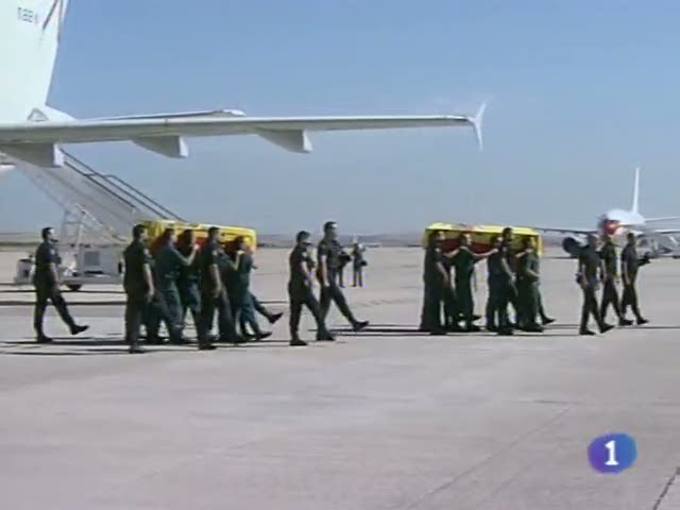 26/08/2010 00:16:23A las once de la mañana han llegado a la Base de Torrejón de Ardoz, en Madrid, los restos mortales de los tres españoles asesinados ayer en Afganistán. Mucho dolor a pie de pista, donde las familias del capitán, el alférez y el traductor han sido arropadas por las m á ximas autoridades, entre ellos el presidente de C_LM. Mientras, en la localidad de origen de la familia del capitán albaceteño, en Tarazona de La Mancha, los vecinos se concentraban para expresar su solidaridad con la familia. Los cazadores y propietarios de cotos en C-LM, critican el cobro de comisiones por concesión de licencias. Auguran un mala temporada cinegética por la crisis. La plaga de la polilla del tomate será combatida con predadores naturales en proyecto piloto puesto en marcha por la Consejería de Agricultura y la Unión de Pequeños Agricultores en Tobarra, Albacete. El Puertollano, apeado en la primera eliminatoria de la Copa del Rey frente al Murcia. Sigue adelante el Guadalajara tras ganar por uno a cero al Pontevedra, en casa de los gallegos. (26/08/10).