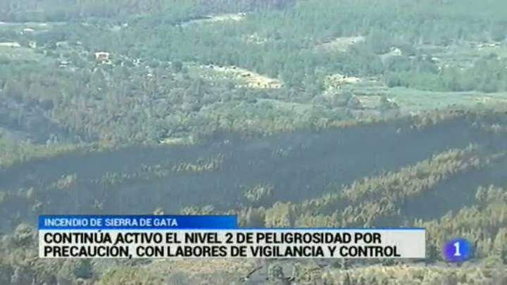 11/08/2015 00:27:44Un día más, continúa activo el nivel 2 de peligrosidad en la Sierra de Gata. El incendio aún no se ha extinguido y el viento de la zona podría reavivar las llamas. El objetivo de esta alerta es de precaución, mientras las localidades afectadas van recuperando la normalidad... Mientras tanto, otro incencio se produjo ayer tarde en la región. En este caso, en la localidad cacereña de Logrosán, junto a la presa del Ruecas y cerca de la del Cubilar. Un total de 40 personas trabajan en la zona, además de 8 medios aéreos y 9 terrestes...Satisfacción en el primer encuentro que han mantenido los sindicatos Comisiones Obreras y UGT con el nuevo director de la Agencia Extremeña de Cooperación Internacional. La cita ha servido para establecer prioridades. Algunas de ellas, situar de nuevo a los sindicatos como ejes en asistencia pro-derechos humanos, eliminar trámites burocráticos y un plan de rescate a ONGs.