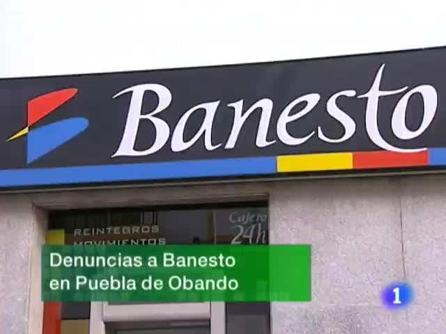 14/12/2009 00:19:30Primeras denuncias por el presunto fraude en la oficina de Banesto de Puebla de Obando. Algunos de los afectados las han presentado hoy en el juzgado de Montijo. Aseguran que el director de la oficina les ha estafado más de 150 mil euros. Por su parte, Banesto, continúa con la investigación para darles una solución...El presidente de la Junta de Extremadura, Guillermo Fernández Vara, asiste a la cuarta conferencia de presidentes autonómicos en Madrid. La Economía sostenible, el empleo, el campo, la violencia de género y la política del agua los temas a debatir. Sindicatos y empresarios también asisten al encuentro....Extremadura ha registrado en lo que va de año cerca de 78 mil diligencias previas por delitos y faltas cometidas en nuestra comunidad. El 45 por ciento de las infracciones fueron las acometidas contra el patrimonio, seguidas de las relacionadas con la violencia de género. Son datos de la Fiscalía superior de Justicia extremeña. (14/12/09)