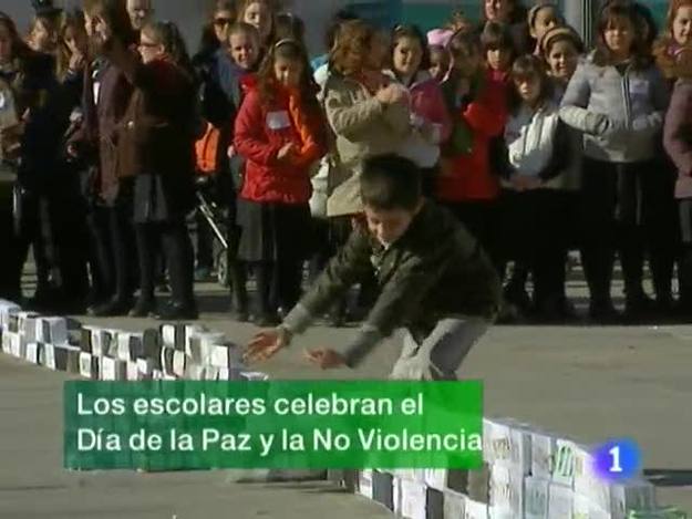 28/01/2010 00:25:39El municipio extremeño con más de 5 mil habitantes que menos paro tiene es Talayuela, que también es el que más jóvenes tiene. Por contra, el que más parados registra es Montijo. Son algunos de los datos que contiene el primer Atlas Socioeconómico de la región presentado esta mañana en Mérida...Con un simbólico derribo de un muro construido con cartones de leche han celebrado hoy los escolares de Villafranca de los Barros el día de la paz y la no violencia. Un día en el que ha estado muy presente en sus mentes los afectados por el terremoto de Haití...45 de los 60 puntos negros de las carreteras extremeñas han sido eliminados. Lo ha dicho esta mañana en Cáceres el consejero de Fomento, Jose Luis Quintana, quien ha señalado que las carreteras extremeñas no tienen nada que envidiar a las del resto del país...La consejería de Sanidad invertirá 60 millones de euros en obras y equipamientos sanitarios en la región. (28/01/10)