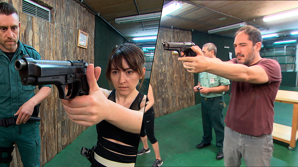 ¿Cómo se preparan las escenas de acción de Olmos y Robles? Nos colamos en una clase sobre manejo de armas y movimientos básicos de 'cuerpo a...