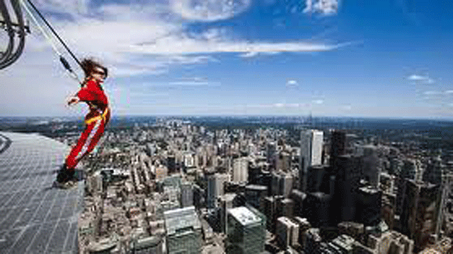 A 356 metros de altura, en la Torre Nacional de Canadá (Torre CN), seis valientes, sujetos por un arnés a un carril sobre sus cabezas caminaron...