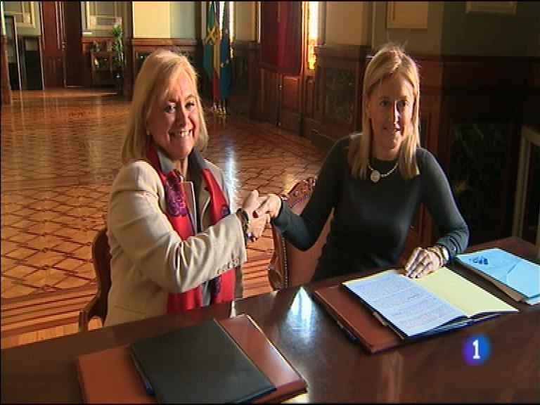 Mercedes Fernández y Cristina Coto, las presidentas del Partido Popular y de Foro Asturias han escenificado este mediodía, el acuerdo por el que...