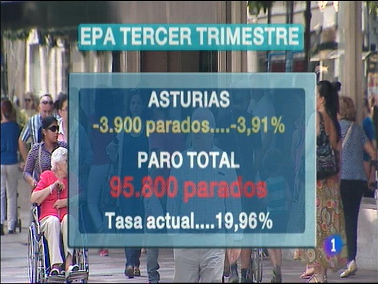 23/10/2014 00:28:00Asturias cerró el tercer trimestre del año con tres mil novecientos parados menos, según los datos de la Encuesta de Población Activa publicados esta mañana. El número de desempleados se queda por debajo de 96.000, algo menos del veinte por ciento de la población activa.