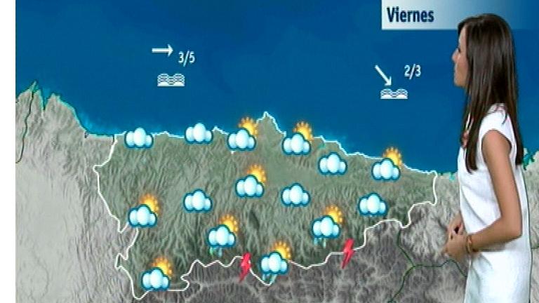 Mañana viernes, en Asturias, el cielo estará cubierto. Precipitaciones aisladas, generalizadas por la tarde. Tormentas, más probables en cordillera...