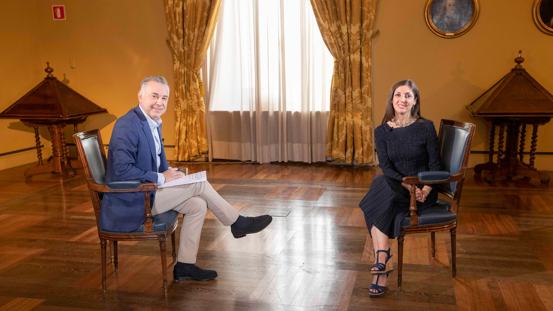 La escritora se somete a todas las secciones del programa: La semblanza (dedicaba al aspecto biográfico de los invitados en la que participan la editora literaria Ana Gavin, y el director de la Fundación Juan March, Javier Gomá), Sala de prensa (en la que los personajes hablan de asuntos de actualidad), En un rincón del alma (relativa al aspecto humano de los entrevistados), Primer plano (en la que el personaje se somete a un test de reflejos e ingenio) y El muro (en la que el personaje deja una frase firmada de su puño y letra como filosofía de su propia personalidad).