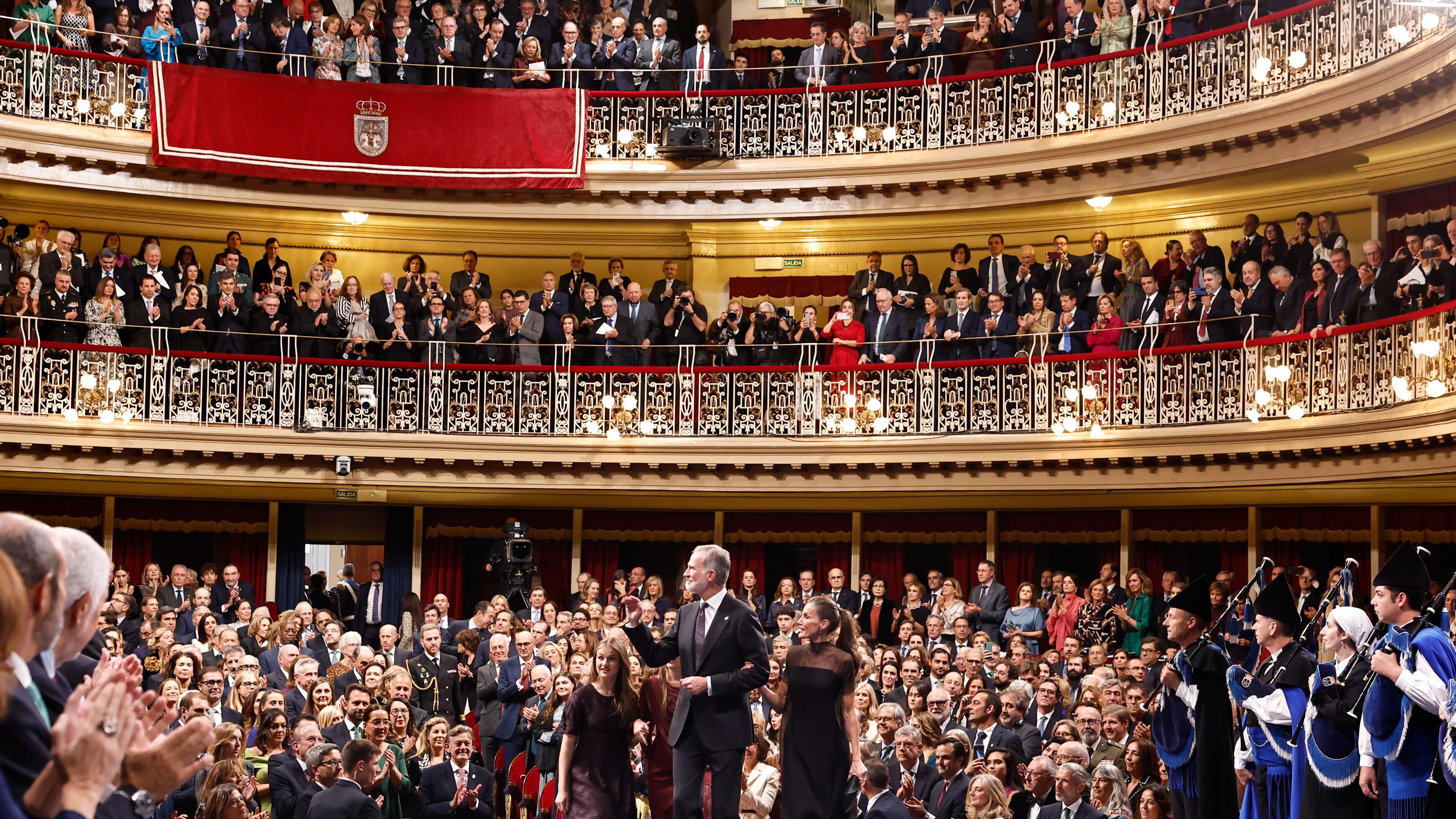 Foto: Ballesteros/EFE — Los reyes con la princesa Leonor y la infanta Sofía a su llegada a la ceremonia de entrega de los Premios Princesa de Asturias en el Teatro Campoamor