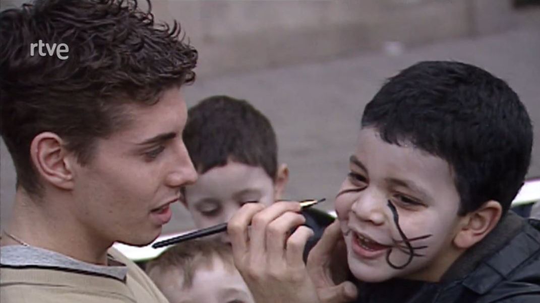Els joves pinten la cara de la canalla que participa a la rua del Carnaval Infantil de Barcelona, i que fan acompanyats d'un un grup d'animació