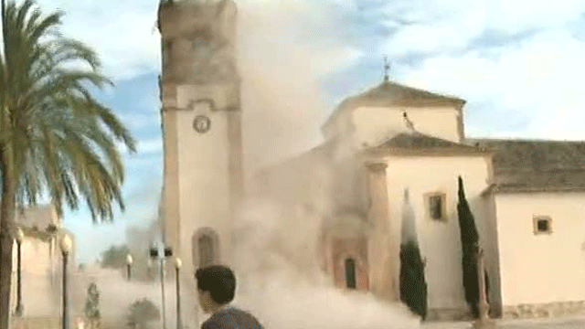 Televisión Española fue testigo en primera persona del derrumbamiento del campanario de la Parroquia de San Diego.