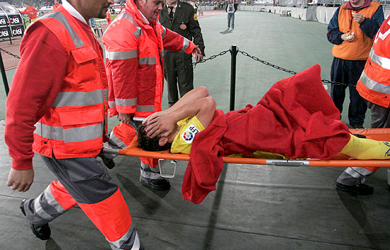 Santi Cazorla puede decir adiós a la temporada tras la rotura de peroné que sufrió ante el Almería (05/04/2009).
