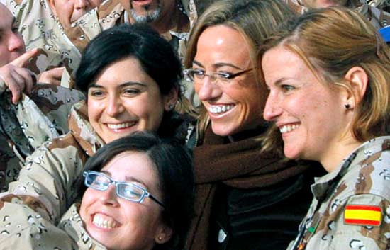 La ministra de Defensa, Carme Chacón, que ha visitado a las tropas españolas en Afganistán junto con el titular de Exteriores, Miguel Ángel...
