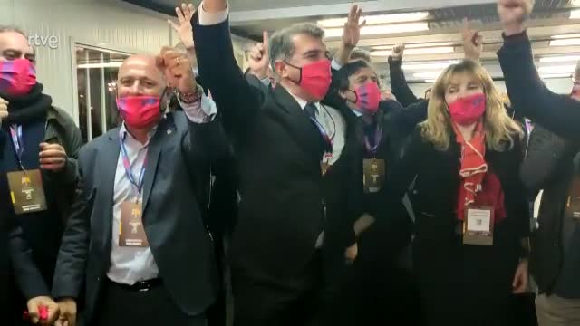 L'equip de Joan Laporta celebra la victòria després de coneixer els resultats