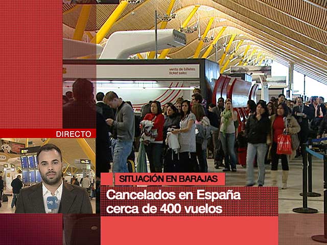 En el aeropuerto de Barajas, en Madrid, se han suspendido casi cuatrocientos vuelos.