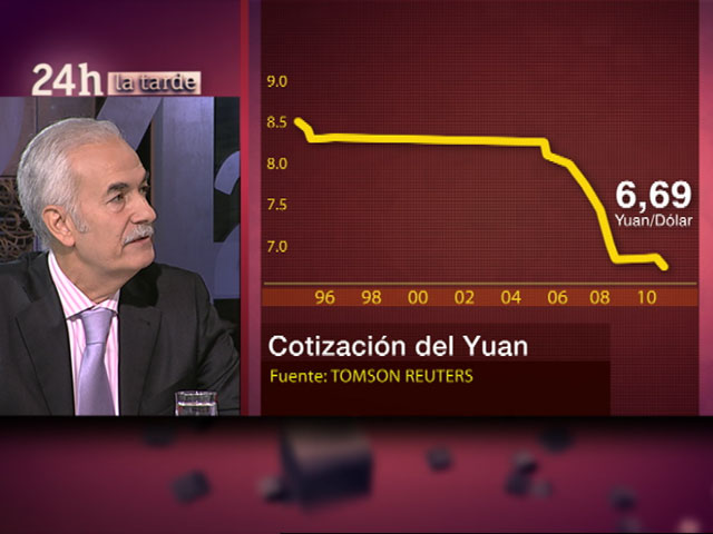 07/10/2010 00:10:20Juan Ignacio Crespo, analista y director de la agencia Thomson Reuters en Europa, ha explicado en el Canal 24 Horas de TVE la preocupación existente en el mundo a una guerra de divisas. Por una parte hay una 'guerra' entre el yuan (la moneda china) y el dólar, la moneda de EE.UU.
