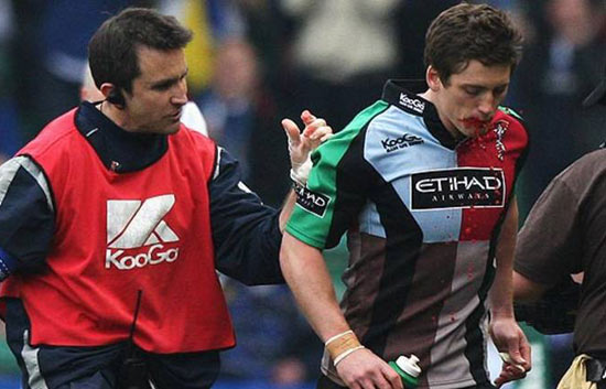 El extremo del equipo de rugby inglés de los Harlequins, Tom Williams, ha sido sancionado por cuatro meses, tras fingir una herida en la boca durante un partido que le producía sangre, gracias a la que pudo ser sustituído (26/08/09).