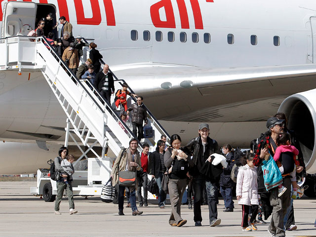 Pasajeros españoles llegan de Tokio