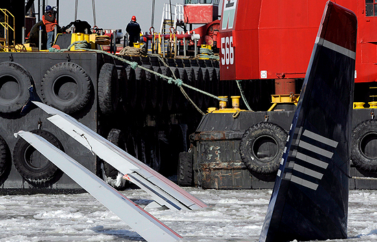 Primeras imágenes del amerizaje del avión que el pasado jueves tuvo que amerizar en el río Hudson, en Nueva York, tras chocar contra una bandada de...