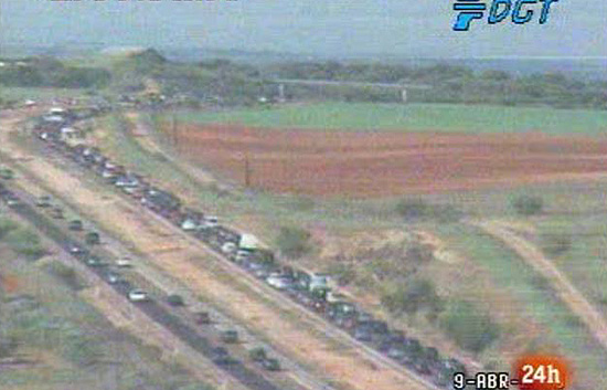 Las carreteras de Madrid y Valencia registran los primeros atascos de la mañana del Jueves Santos. Hay también problemas de circulación en Toledo,...