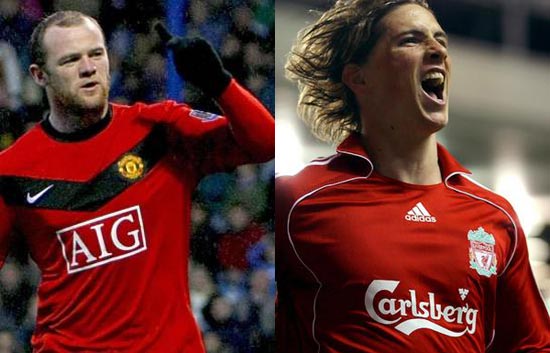 El Manchester United - Liverpool de la Premier se prevé un duelo de goleadores entre Wayne Rooney y Fernando Torres (20/03/2010).