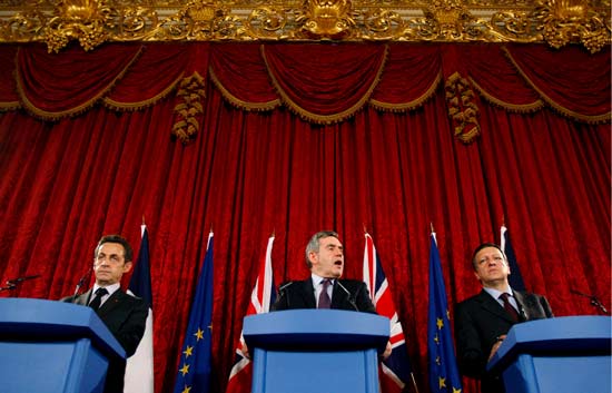 El primer ministro británico, Gordon Brown, se ha reunido con el presidente fracés, Nicolas Sarkozy, y el presidente de la Comisión Europea, José...