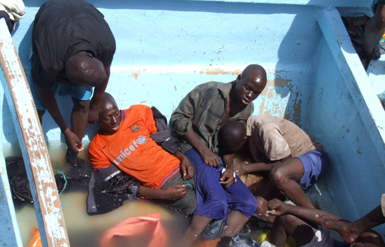 Los supervivientes tuvieron que tirar al mar los cuerpos de sus compañeros fallecidos tras varios días a la deriva en un cayuco. (12/07/08)