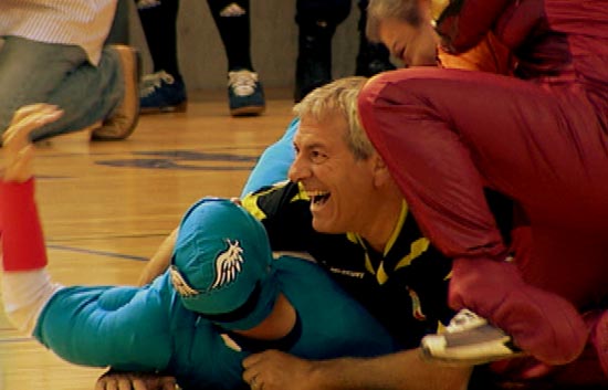 El Triangular Benéfico de Alcalá a favor de la niña Lucía Gil dejó ver imágenes curiosas en el partido de famosos contra superhéroes (20/03/2010).