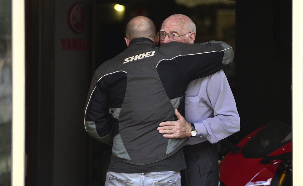 Aficionados al motociclismo se han concentrado en la tienda de motos en Mallorca del abuelo de Luis Salom poco después de que el piloto falleciera...