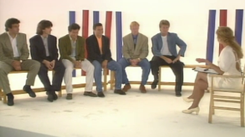Julia Otero entrevista a los jugadores del Fútbol Club Barcelona Alexanco, Bakero, Begiristain, Koeman, Eusebio y Laudrup. Entrevista y actuación...
