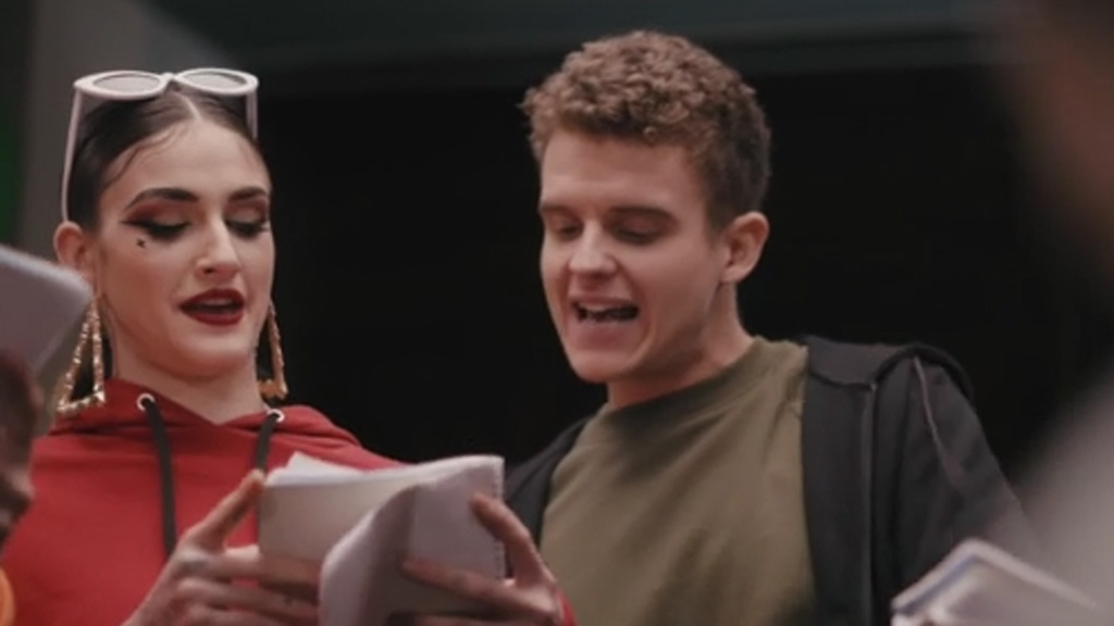 Arkano rapea con los jóvenes protagonistas del programa en torno al tema de la semana: el machismo.