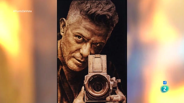 El dibuixant de pirogravat, Julián López Romero, fa servir el bufador per cremar la fusta i crear obres de més de dos metres de llarg.