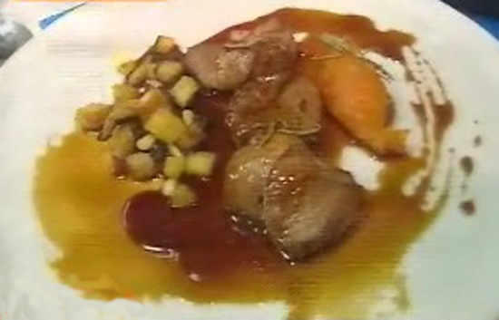 Ingredientes:600 gr. pierna cordero8 gr. piñones8 gr. pasas50 gr. setas50 gr. calabaza30 gr. mantequillaromerotomillosalsa de...