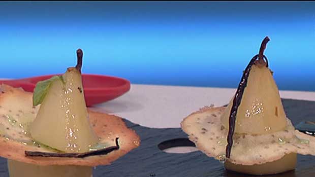Peras a la menta con tulipa de anís