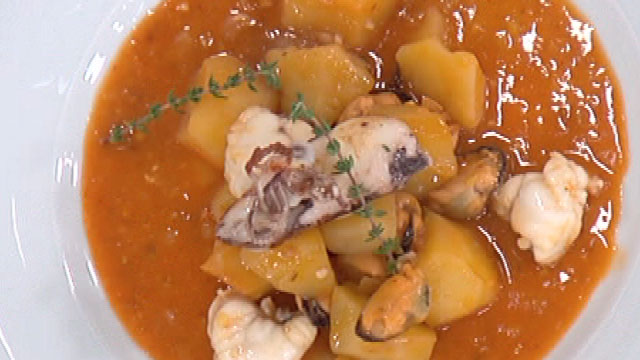 Cazuela de patatas con mejillones y chipirones