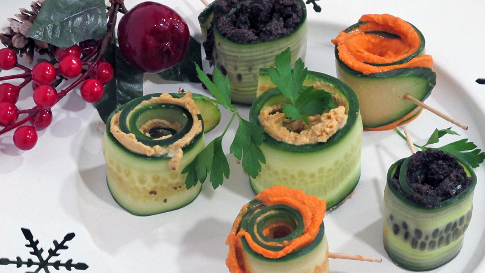 Menú vegetariano: Rollitos de pepino con patés vegetales
