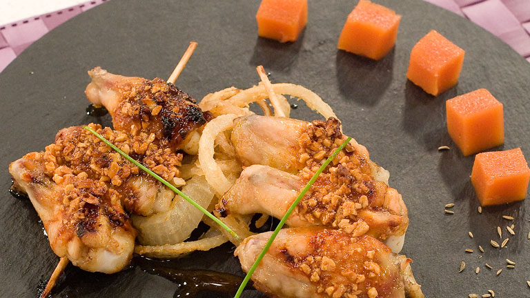 Alitas de pollo a la miel con dados de gazpacho