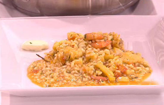 Sergio Fernández ha preparado arroz caldoso con marisco, cuyos ingredientes son: 300 gr. de arroz / 200 gr. de gambas / 100 gr. de rape / 100 gr....