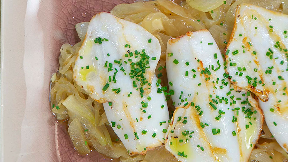 Chipirones rellenos de cebolla
