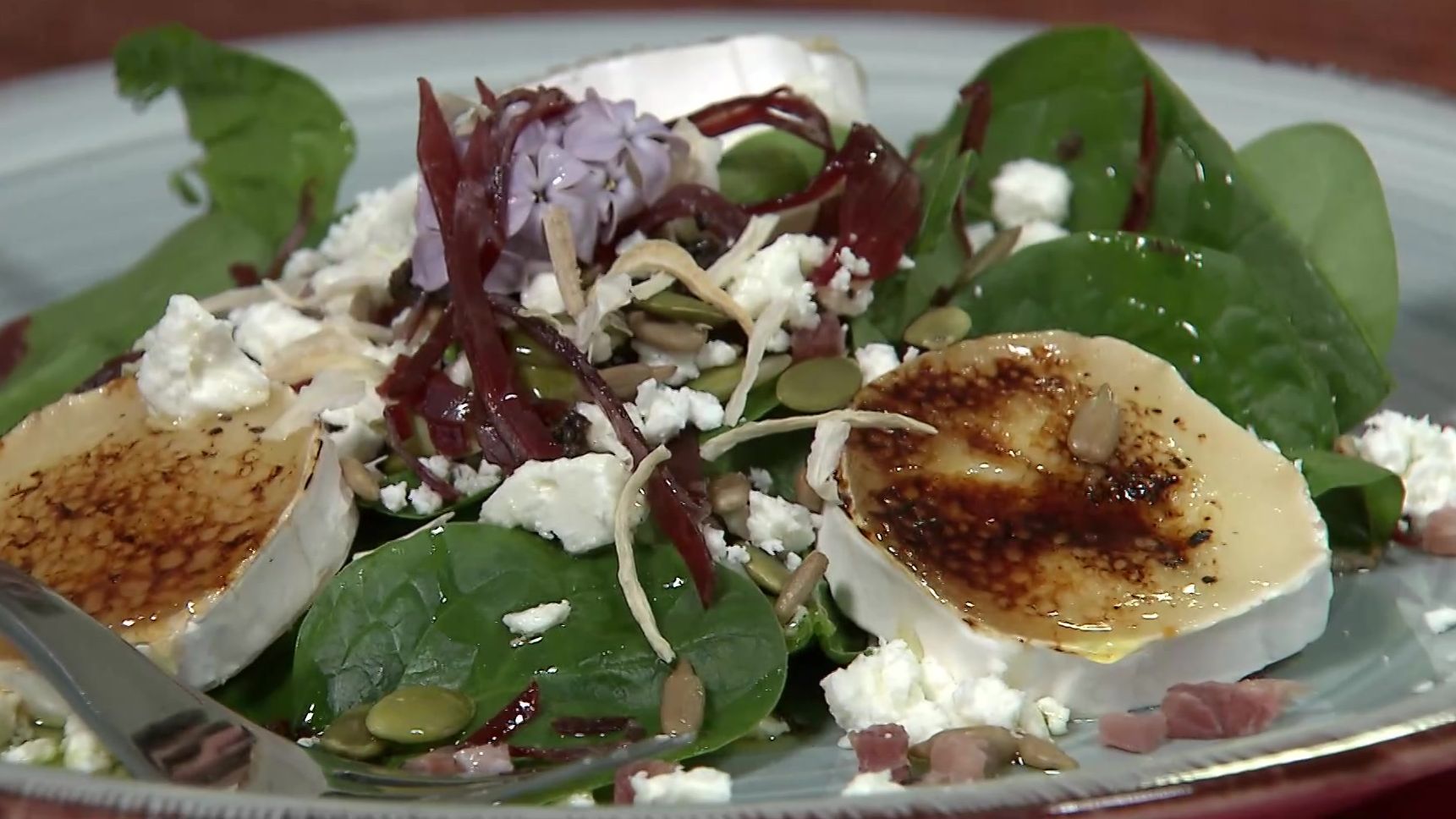 Ensalada de espinaca con variedad de quesos y trufa