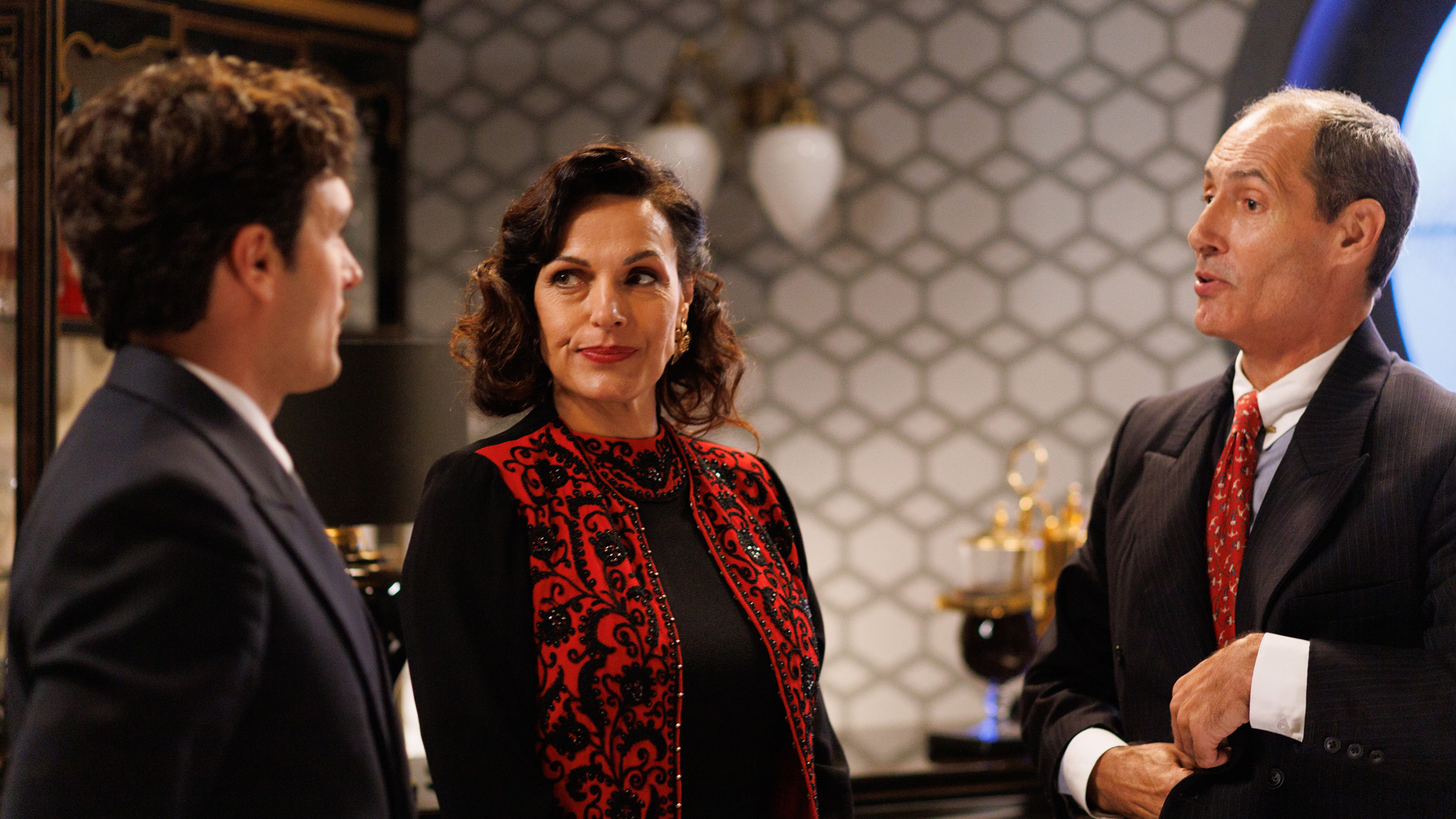 30/11/2023 01:02:27Íñigo Peñalver y Fabio del Moral retoman su antigua relación de amistad, gracias al inesperado encuentro que tuvieron en la galería a causa de la vuelta de doña Bárbara. A través de una conversación entre los dos, Fabio del Moral desvela que tiene serias intenciones de iniciar su carrera en la política española, y además descubrimos el gusto compartido de ambos por las carreras de caballos. Mientras tanto, Antonia siente la necesidad de desvelar a sus compañeras las penurias económicas por las que anda pasando, tras la estafa que ha sufrido con el asunto de Pilar Valladares. Aunque bueno, para Antonia saber que puede dar con Marta, le ayudará a sobrellevar esta carga financiera. Y como las cosas de palacio, van despacio, Miguel no conseguirá hacerse un manitas con el bricolaje de su casa y la de Trini. Finalmente, la presencia de doña Bárbara en Íñigo terminará provocando una fricción entre los dos, que a buen seguro doña Carla no esperará.
