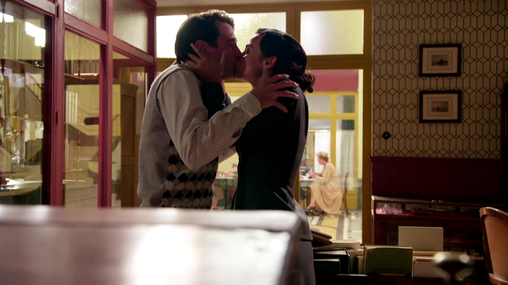 Teresa besa a Miguel en la librería