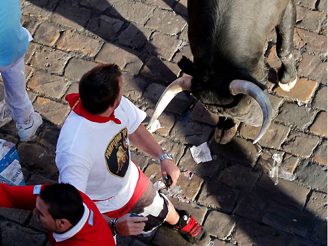 Multitudinario cuarto encierro de los Sanfermines 2010, protagonizado por toros de la ganadería sevillana Dolores Aguirre.
