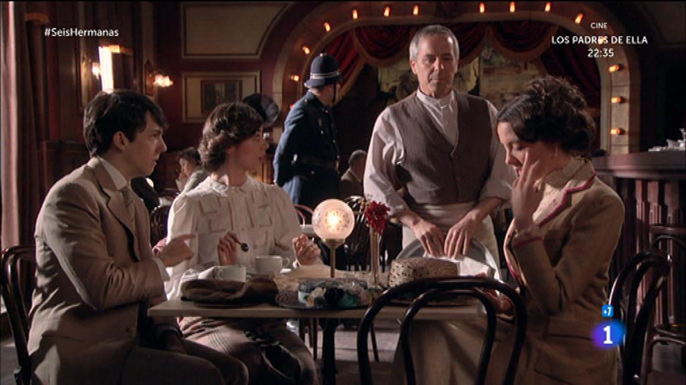 Inés charla con Carlos y Sofía cuándo aparece en el bar la policía para llevársela detenida por relación con el anarquismo.