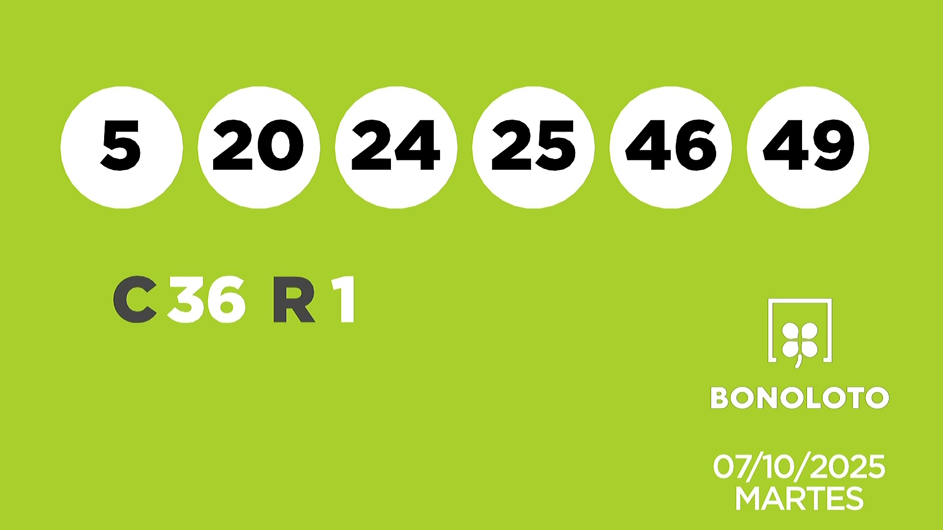Sorteo de la Lotería Bonoloto del 07/10/2025